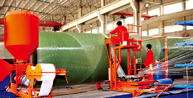 大型現(xiàn)場玻璃鋼儲罐介紹 大型現(xiàn)場玻璃鋼儲罐以熱固性樹脂為基體材料,玻璃纖維為增強(qiáng)材料,采用連續(xù)纖維進(jìn)行螺旋纏繞,工藝先進(jìn),結(jié)構(gòu)合理。具備一般玻璃鋼儲罐的輕質(zhì)高強(qiáng)、耐化學(xué)腐...